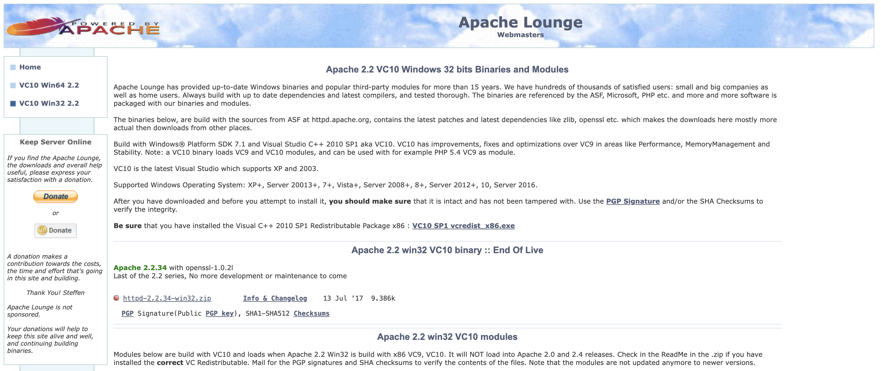 Apache 2.2.34 (Win32 VC10)