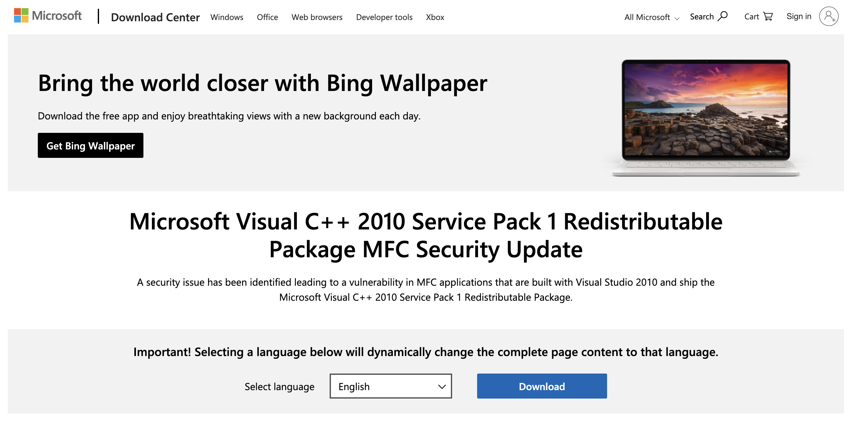 Ao clicar em download selecione o arquivo vcredist_x86.exe;
