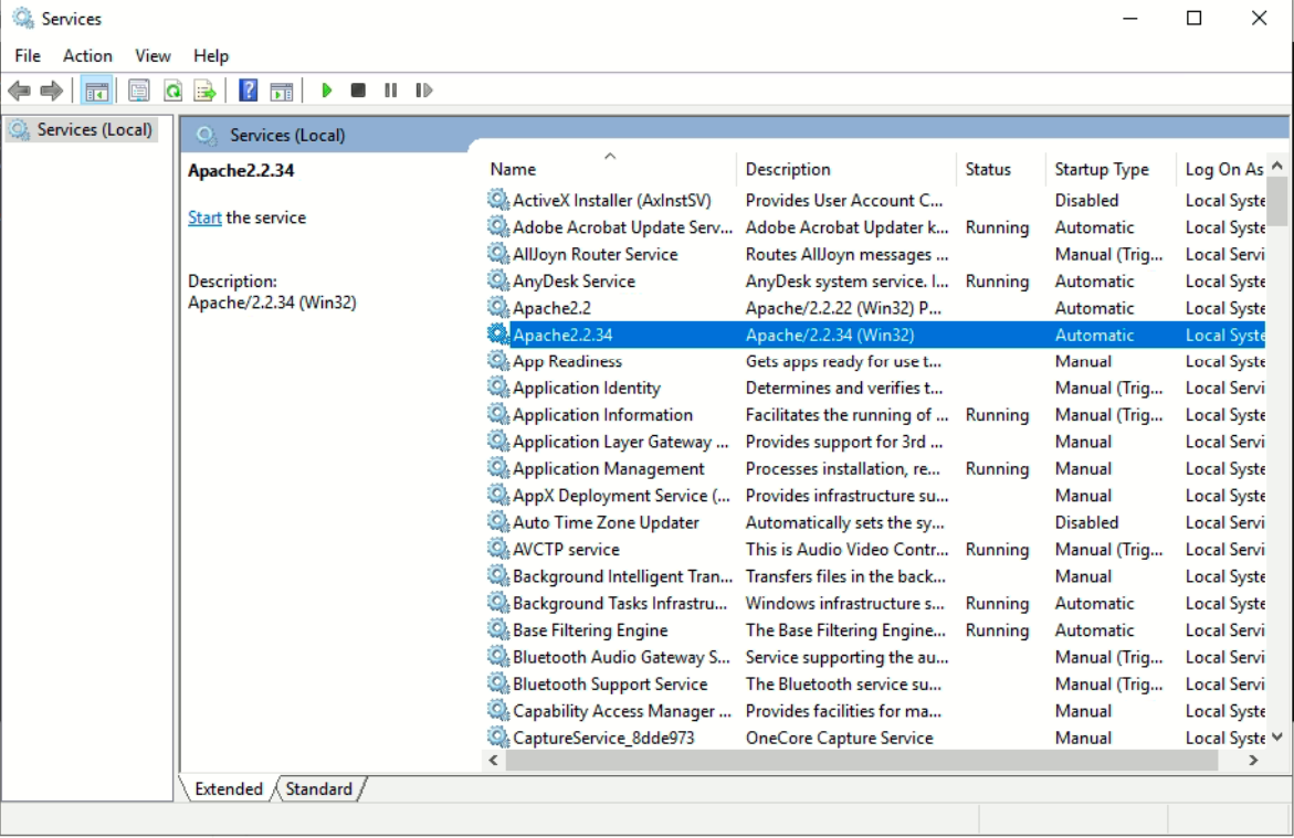 httpd.exe -k install -n "Apache2.2.34"