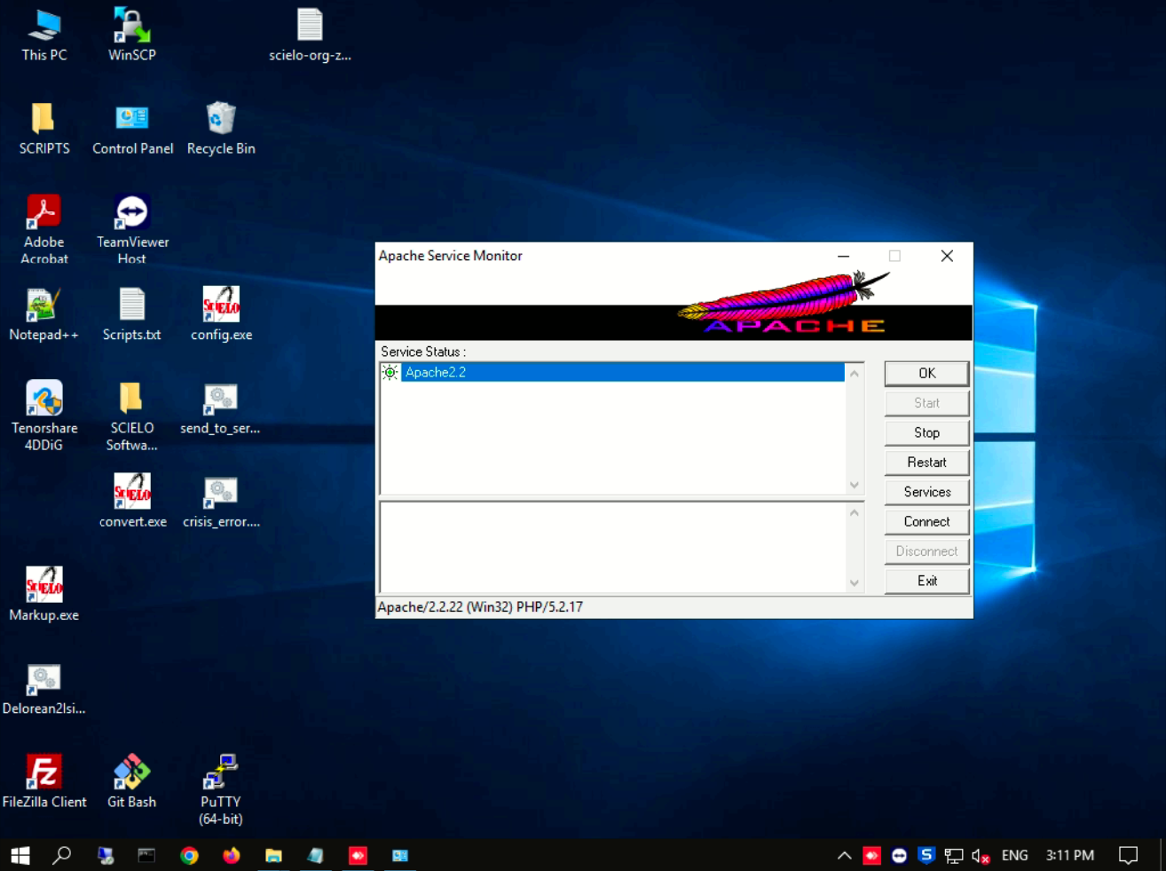 Atualmente, o servidor executa o Apache 2.2.22 (Win32) em conjunto com o PHP 5.2.17.