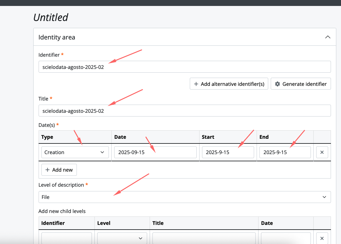 - ID do sistema de acesso : inserir um campo de ID do sistema de acesso ao configurar sua transferência permite automatizar o processo de upload de um DIP para o AtoM. O Archivematica automaticamente captura esse valor quando alcançar o microsserviço DIP de upload. Consulte Carregar um DIP para AtoM para obter mais informações. Este campo é opcional.